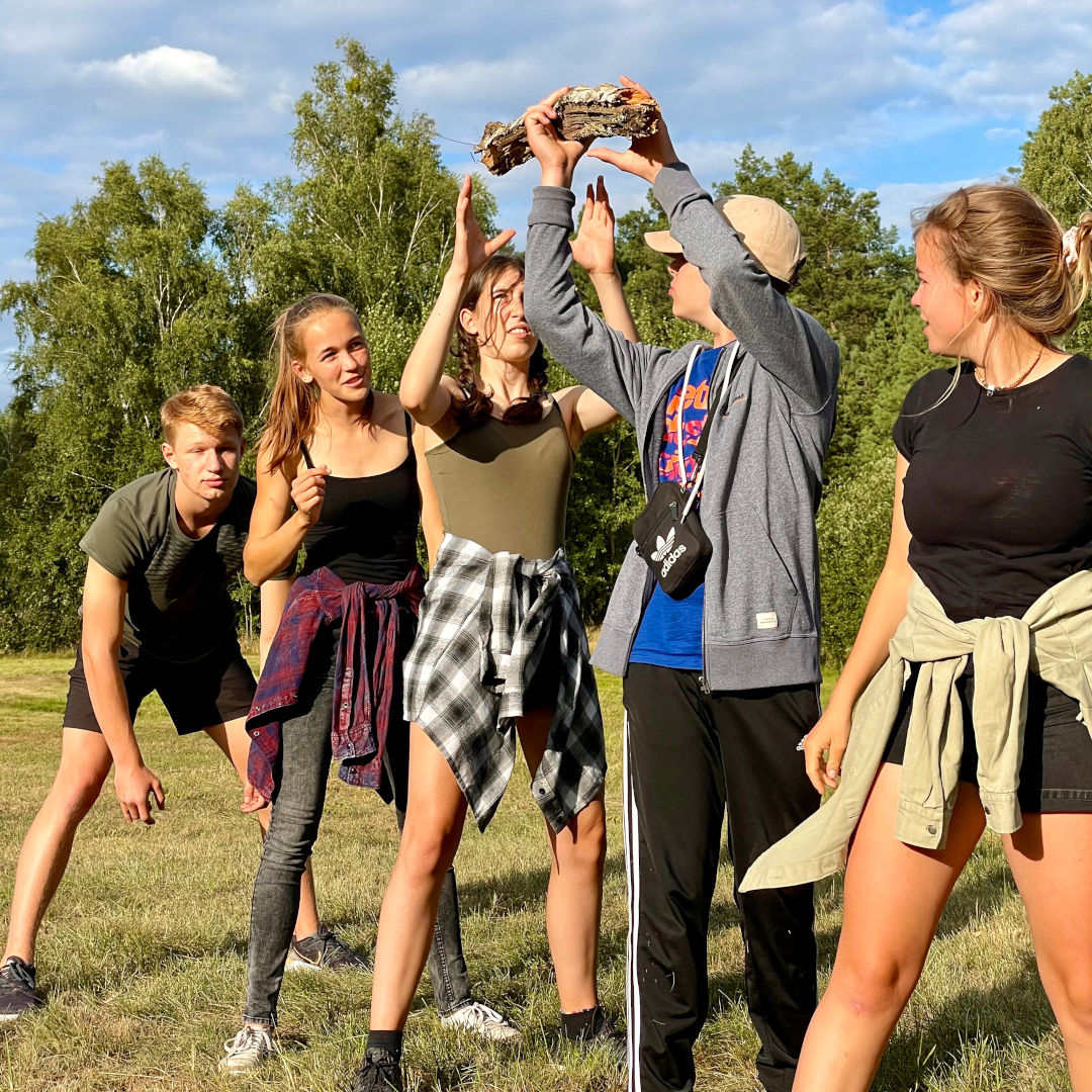 Angebote in diesem Bereich finden vornehmlich im Freien statt, denn auch hier liegt unser Fokus auf den Naturerlebnissen sowie erlebnispädagogischen Elementen. Unter dem Motto "zurück zu den Ursprüngen" geben wir den Schüler*innen die Möglichkeit, fern ab von Handy, Laptop und Konsole, eigene, eventuell verborgene Stärken und Talente zu zeigen. Teamwork aber auch Eigeninitiative werden während verschiedener Aufgaben gefordert und gefördert.